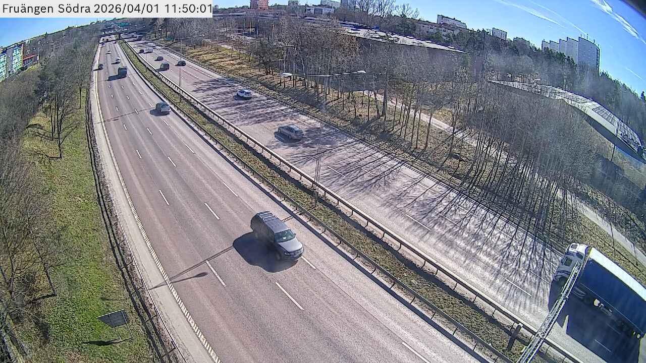 Kameran är placerad på E4/E20 Södertäljevägen i höjd med Fruängen och är riktad mot Stockholm.Uppdaterad: 1 apr. 06:24