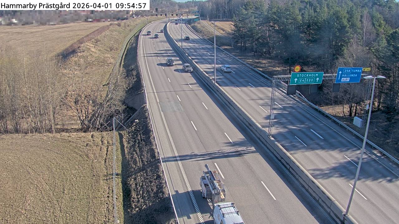 Kameran är placerad på E4/E20 Södertäljevägen mellan sjön Aspen och trafikplats Hallunda och är riktad mot Stockholm.Uppdaterad: 1 apr. 06:23