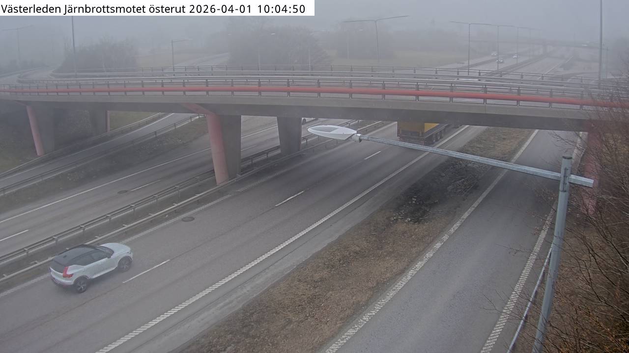 Kameran är placerad på E20 vid Järnbrottsmotet och är riktad västerut.