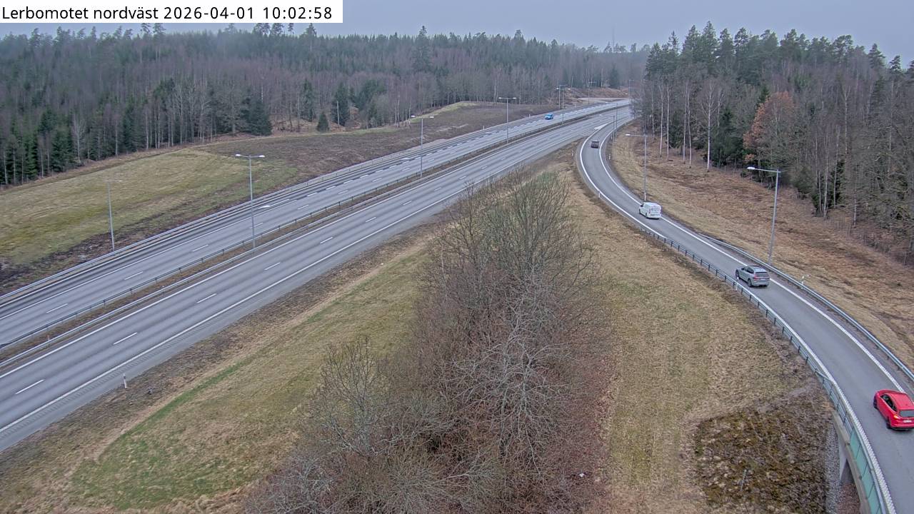 Kameran är placerad vid Lerbomotet och tittar söderut mot Ljunskile och E6 söderut. Uppdaterad: 1 apr. 06:24