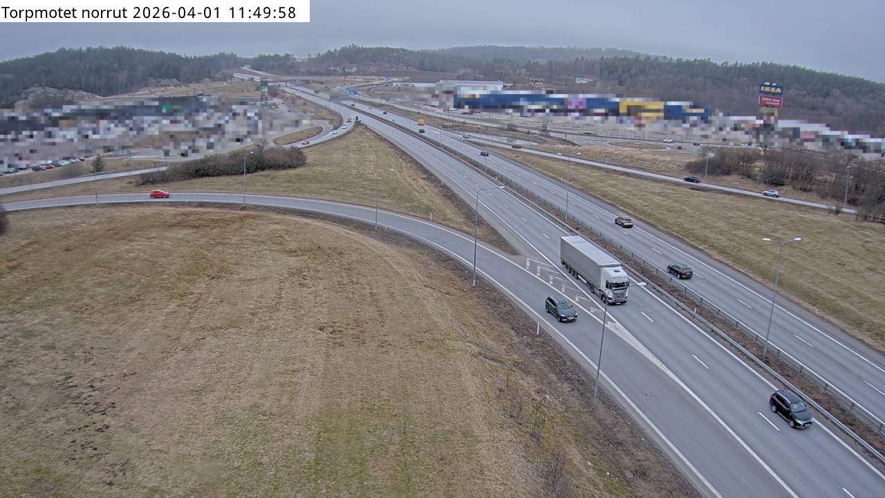 Kameran är placerad på E6 vid Torpmotet och är riktad Norrut.Uppdaterad: 1 apr. 06:24