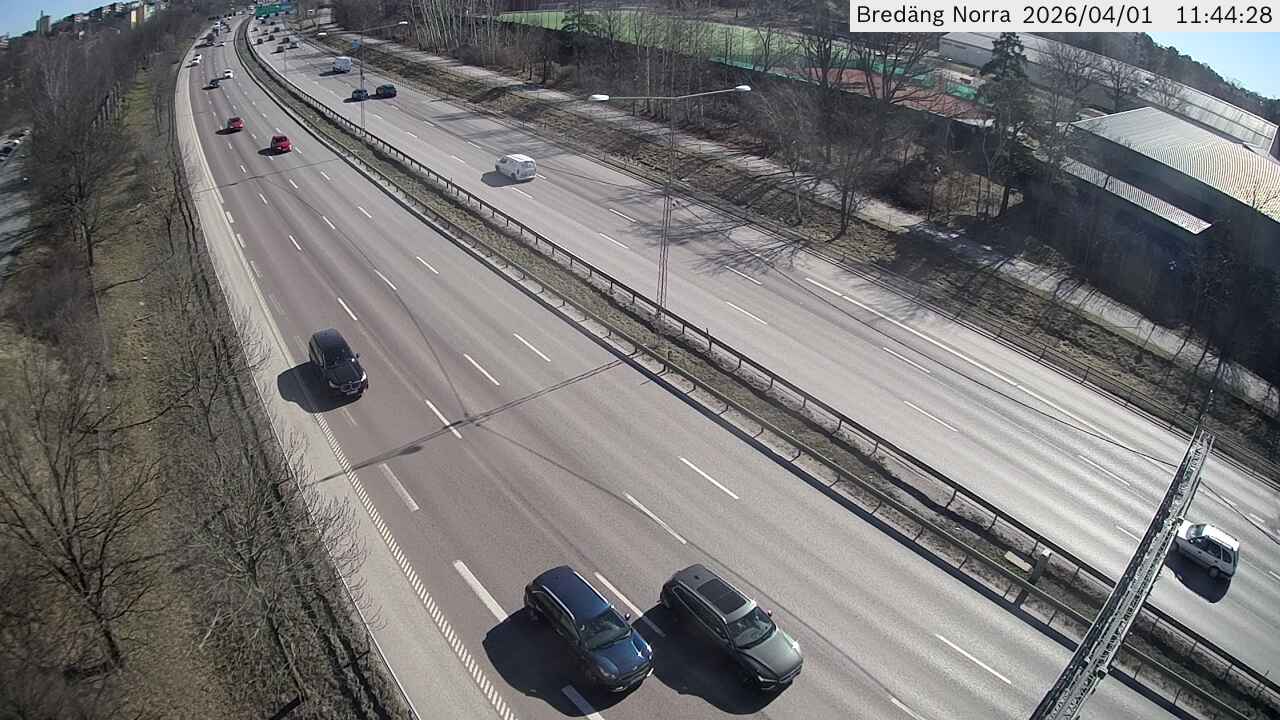 Kameran är placerad på E4/E20 Södertäljevägen i höjd med trafikplats Bredäng och är riktad mot Stockholm.Uppdaterad: 1 apr. 06:24