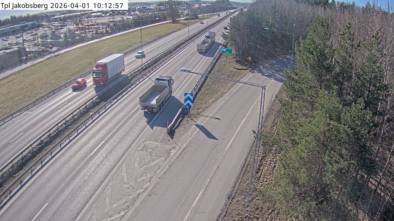 Kameran är placerad på E18 Enköpingsvägen i höjd med trafikplats Jakobsberg och är riktad mot Stockholm.Uppdaterad: 1 apr. 06:24
