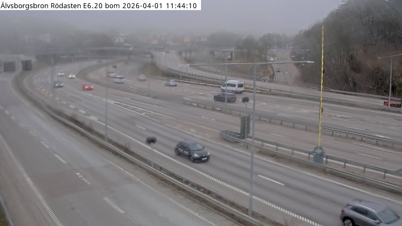 Kameran är placerad på E6 vid Älvsborgsbron och är riktad sydväst.Uppdaterad: 1 apr. 06:25
