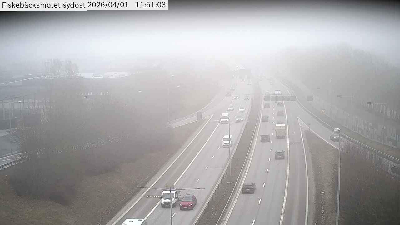 Kameran är placerad på E20 vid Fiskebäcksmotet och är riktad Sydost,