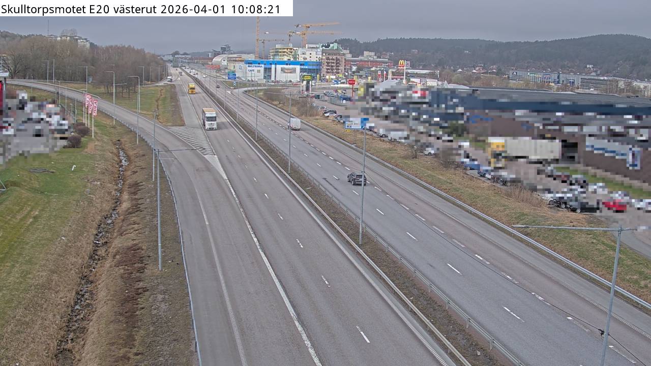Kameran är placerad på E20 vid Skulltorpsmotet och är riktad västerut.