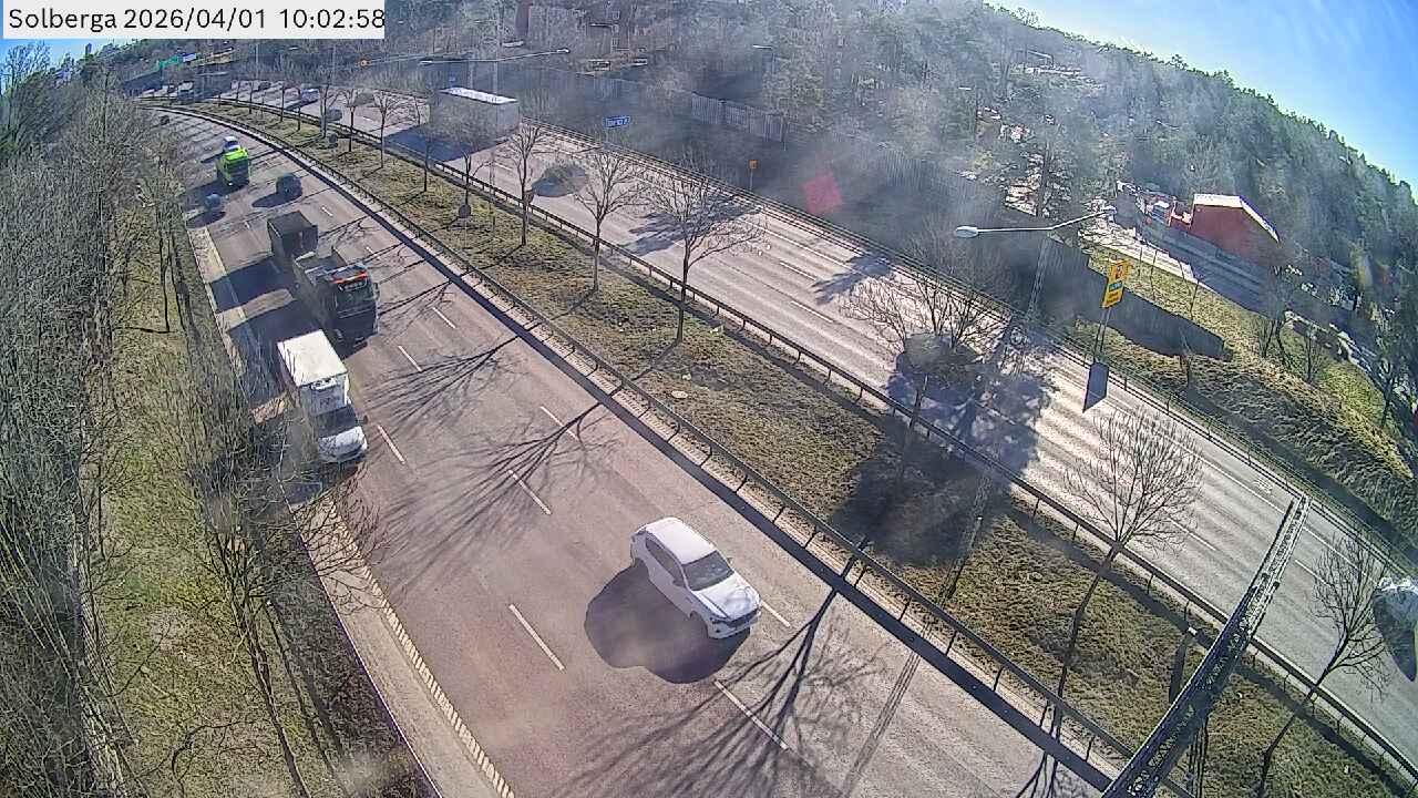 Kameran är placerad på E4/E20 Södertäljevägen i höjd med Solberga och är riktad mot Stockholm.Uppdaterad: 1 apr. 06:23