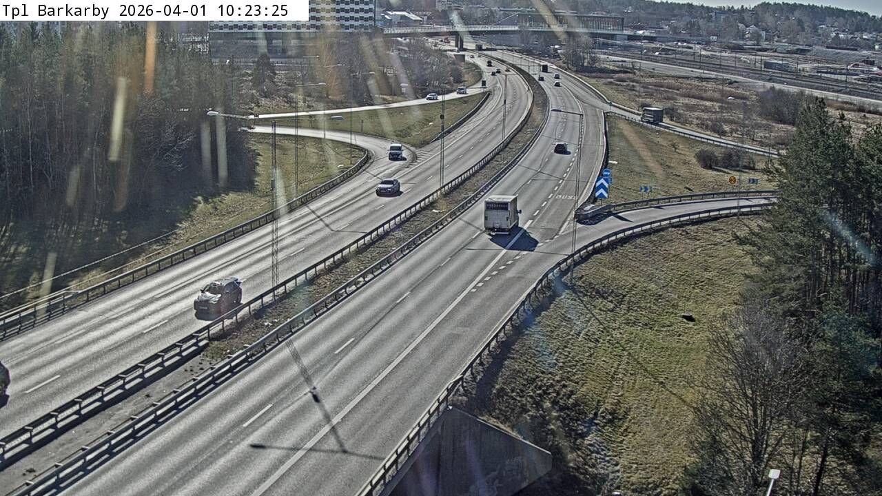 Kameran är placerad på E18 Enköpingsvägen i höjd med trafikplats Barkarby och är riktad mot Stockholm.Uppdaterad: 1 apr. 06:25
