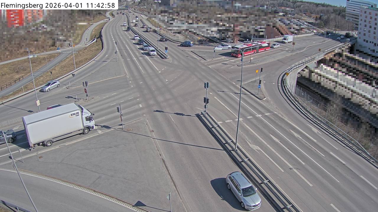Kameran är placerad på väg 226 Huddingevägen i höjd med Flemingsbergs station och är riktad mot StockholmUppdaterad: 1 apr. 06:24