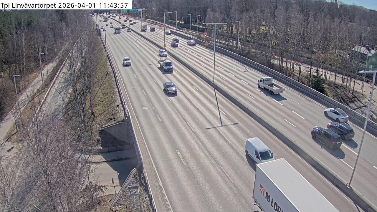 Kameran är placerad på E4 Uppsalavägen i höjd med trafikplats Linvävartorpet och är riktad Stockholm.Uppdaterad: 1 apr. 06:24