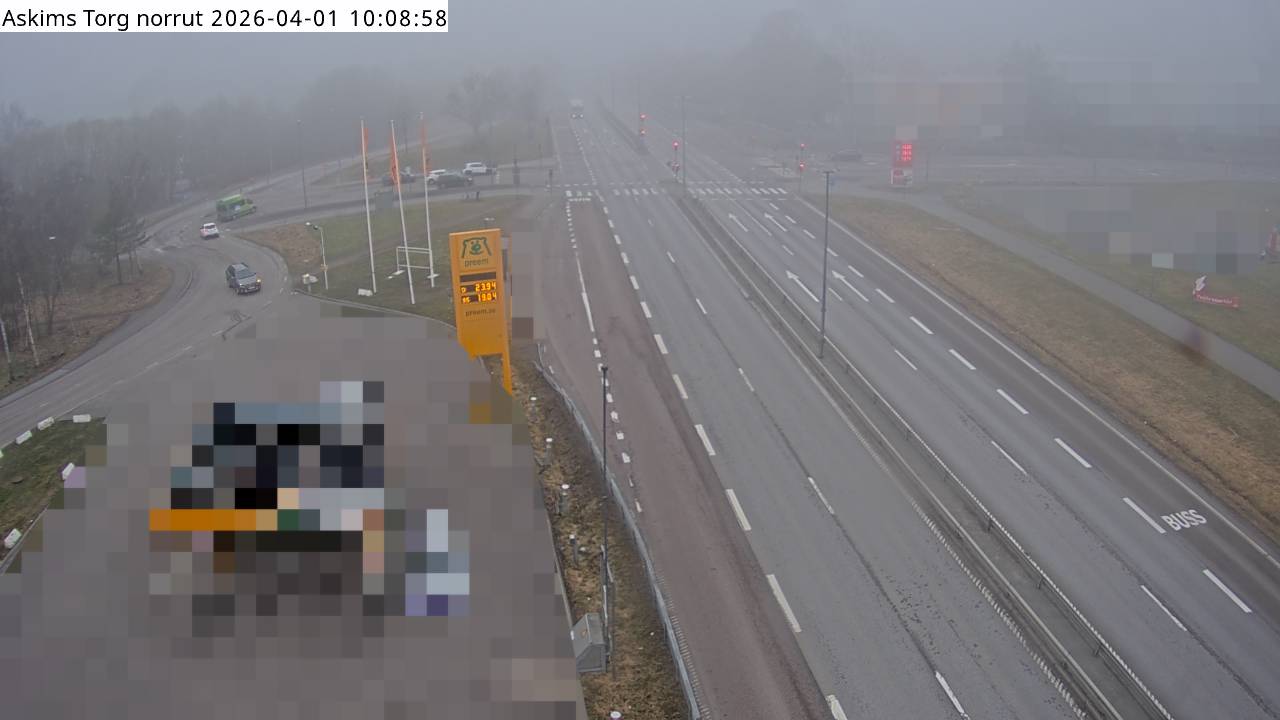 Kameran är placerad på V158 vid Askims torg och är riktad norrut.
