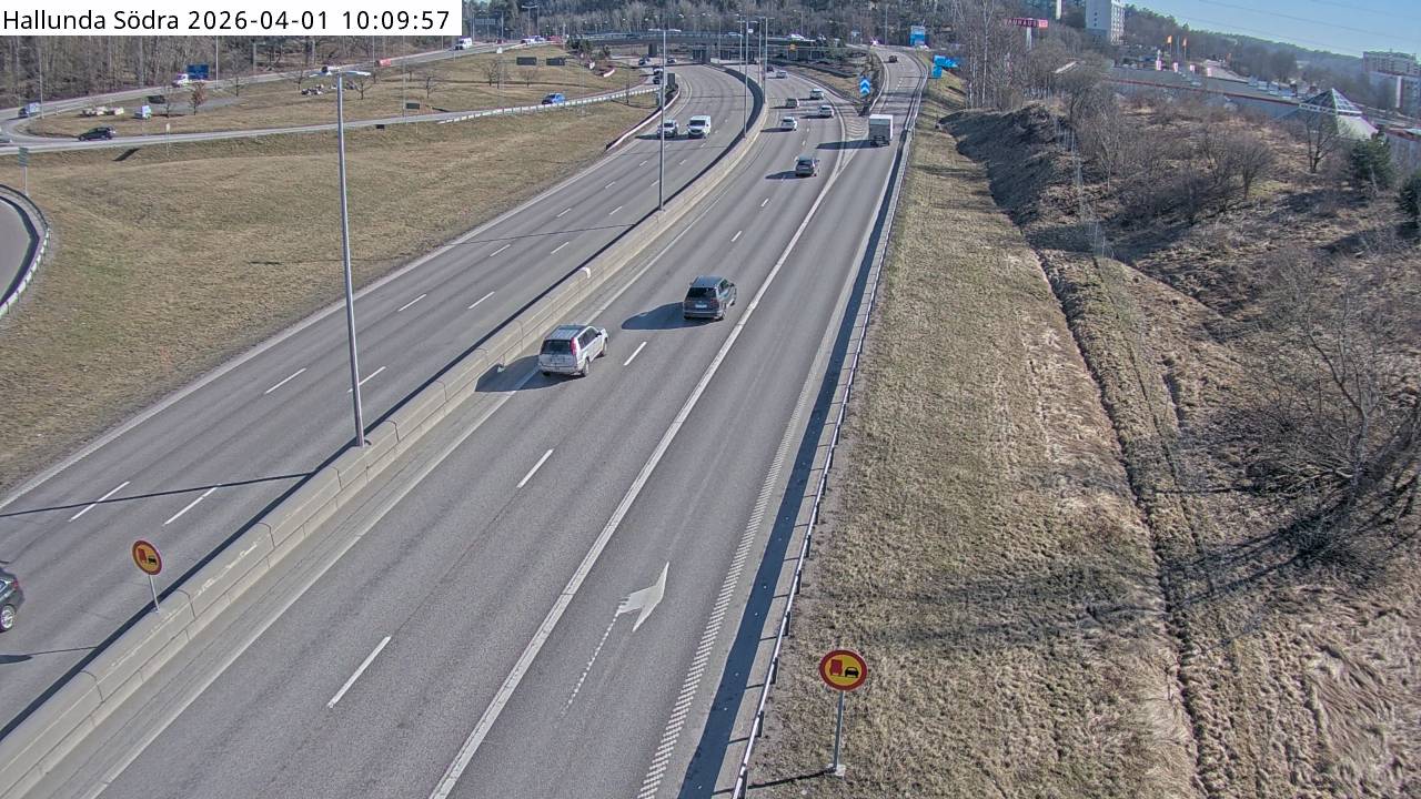 Kameran är placerad på E4/E20 Södertäljevägen i höjd med trafikplats Hallunda och är riktad mot Stockholm.Uppdaterad: 1 apr. 06:24