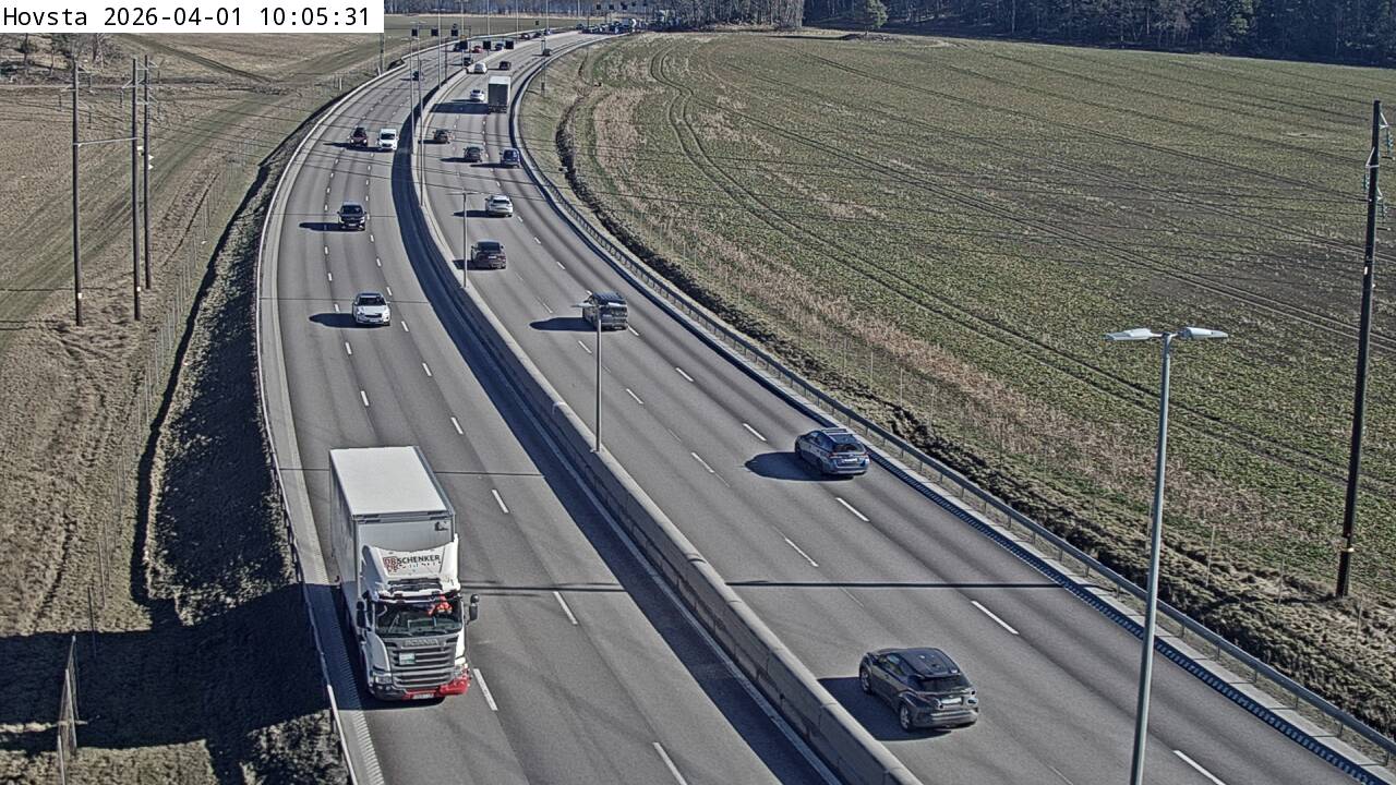 Kameran är placerad på E4/E20 Södertäljevägen mellan Bornsjön och trafikplats Hallunda och är riktad mot Stockholm.Uppdaterad: 1 apr. 06:25