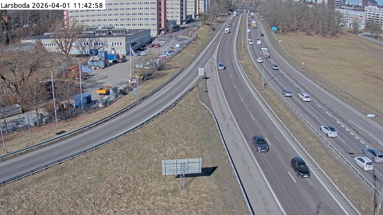 Kameran är placerad på väg 73 Nynäsvägen i höjd emd trafikplats Larsboda och är riktad mot Stockholm.Uppdaterad: 1 apr. 06:23
