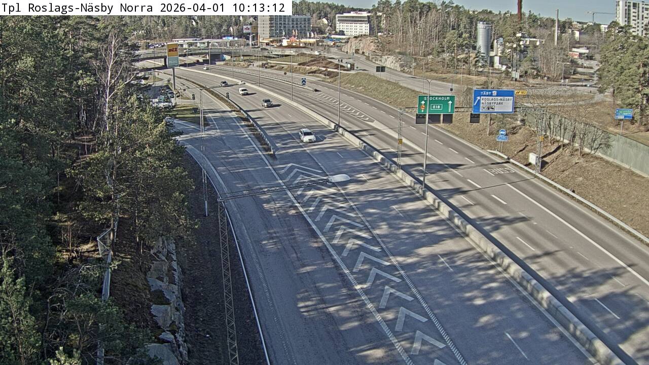Kameran är placerad på E18 Norrtäljevägen vid trafikplats Roslags Näsby och är riktad mot Stockholm.