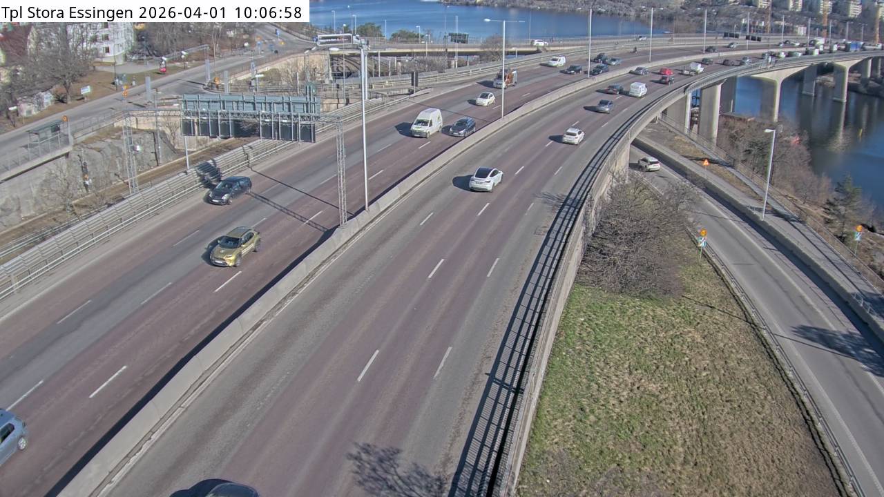 Kameran är placerad på E4/E20 Essingeleden i höjd med trafikplats Stora Essingen och är riktad mot Uppsala.Uppdaterad: 1 apr. 06:24