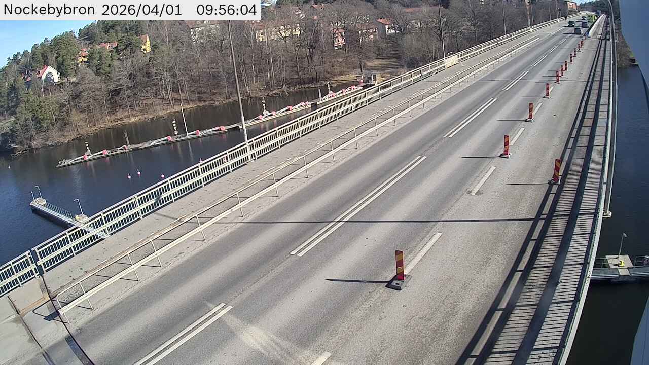 Kameran är placerad på Drottningholmsvägen vid Nockebybron och är riktad mot Stockholm.Uppdaterad: 1 apr. 06:24