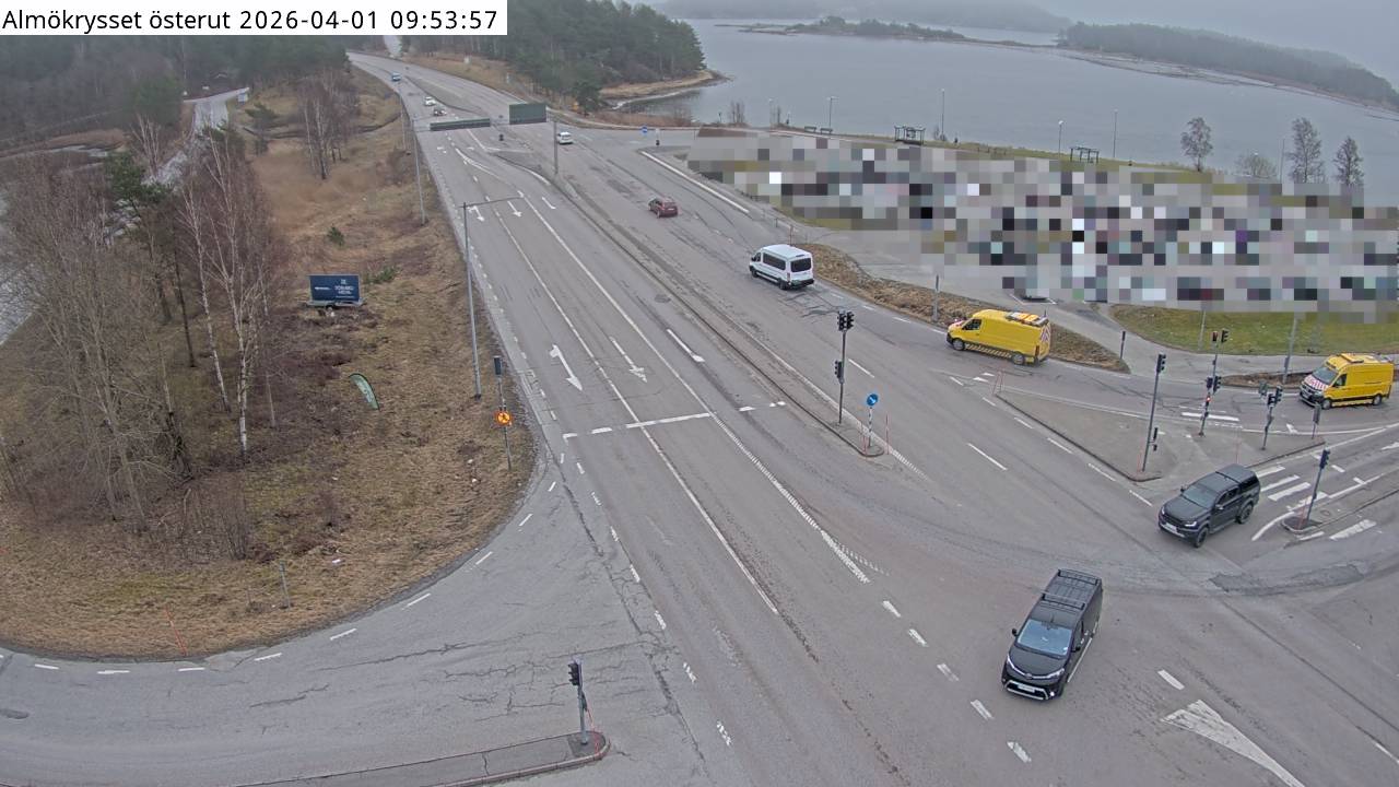 Kameran är placerad på V160 vid Almökrysset och är riktad mot Almön.