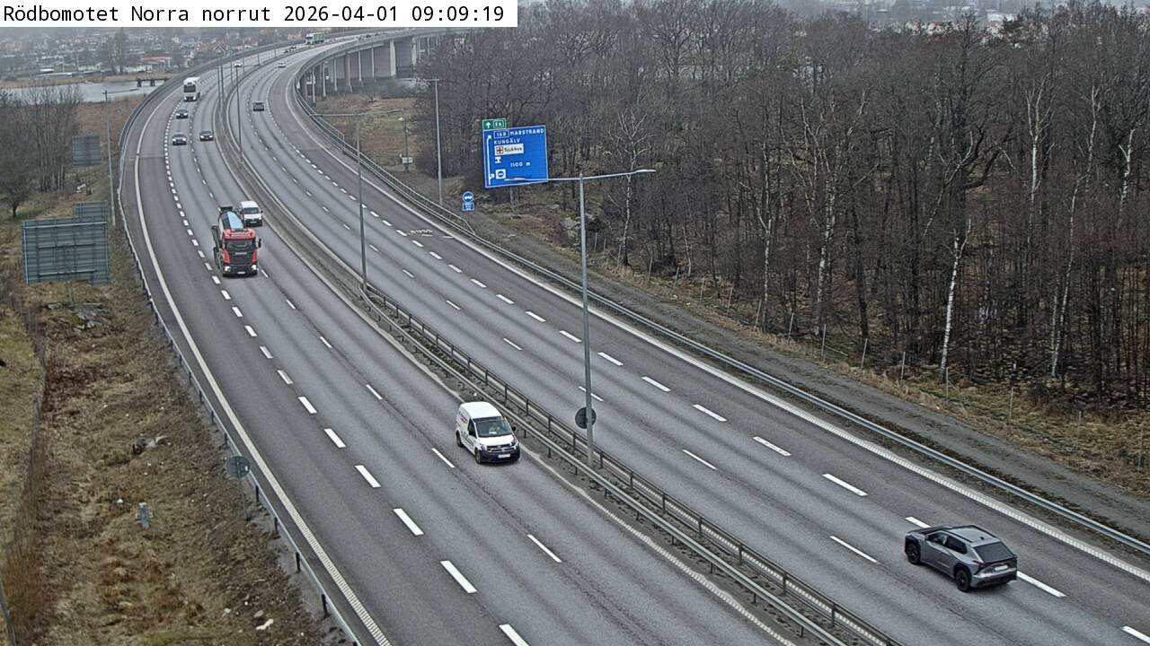 Kameran är placerad på E6 vid Rödbomotet och är riktad mot Göteborg.Uppdaterad: 1 apr. 06:24