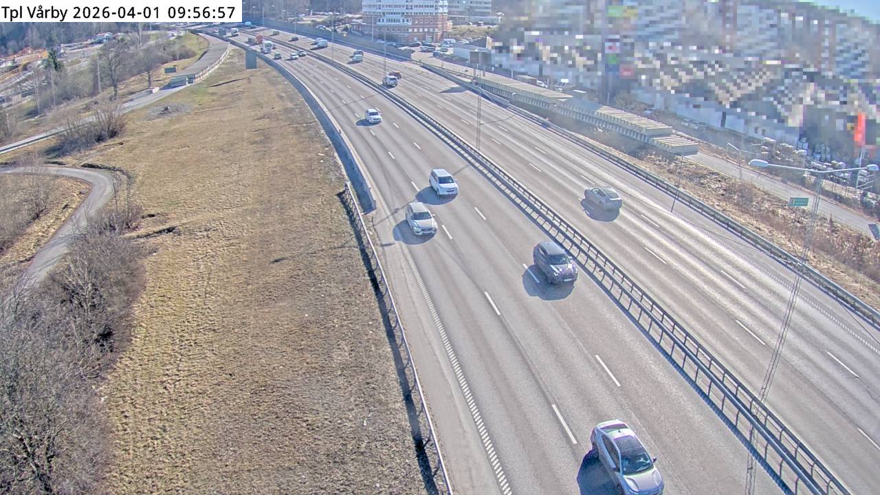 Kameran är placerad på E4/E20 Södertäljevägen i höjd med trafikplats Vårby och är riktad mot Stockholm.Uppdaterad: 1 apr. 06:24