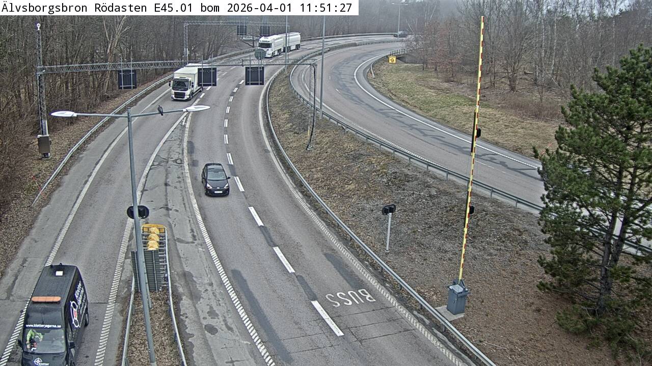Kameran är placerad på E45 vid Älvsborgsbron och är riktad norrut.Uppdaterad: 1 apr. 06:25