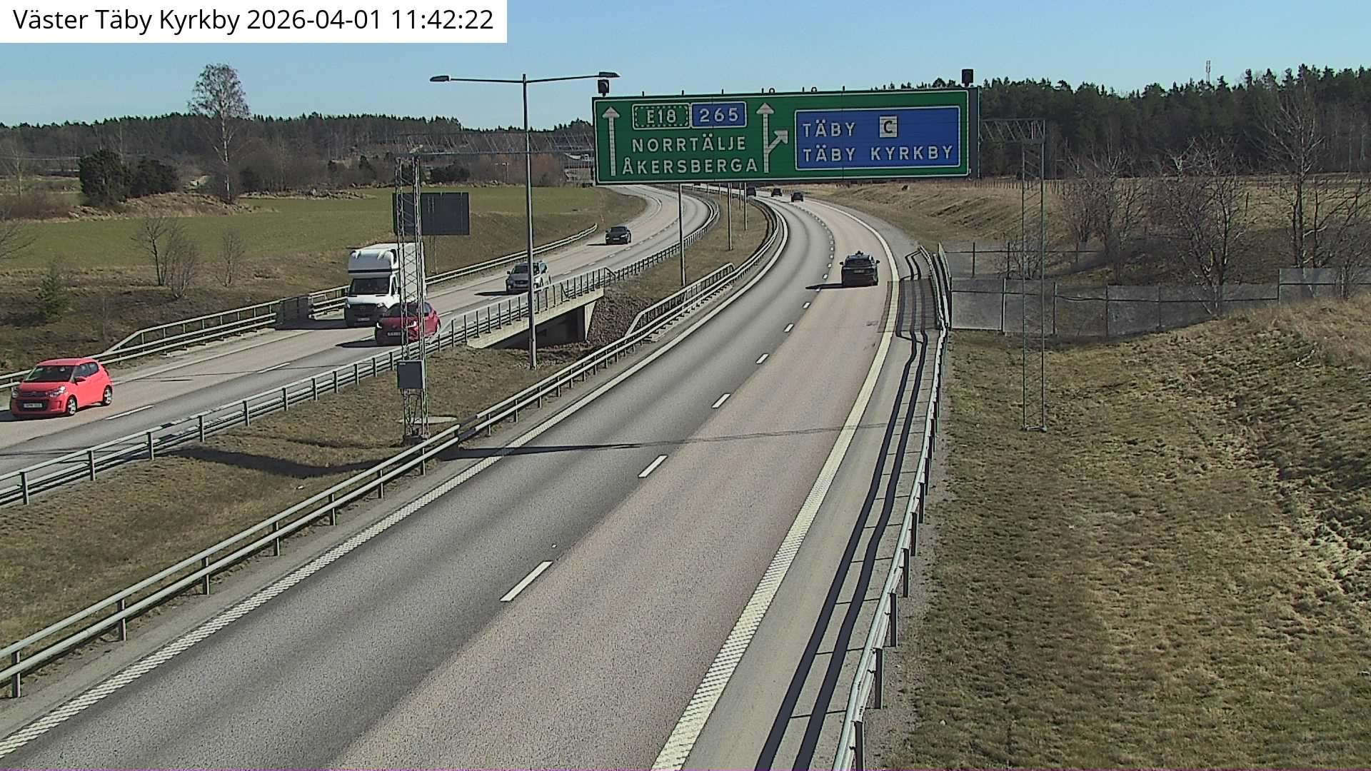 Kameran är placerad på väg 265 Norrortsleden mellan Hagby och trafikplats Täby kyrkby och är riktad mot Rosenkälla/E18.Uppdaterad: 1 apr. 06:24